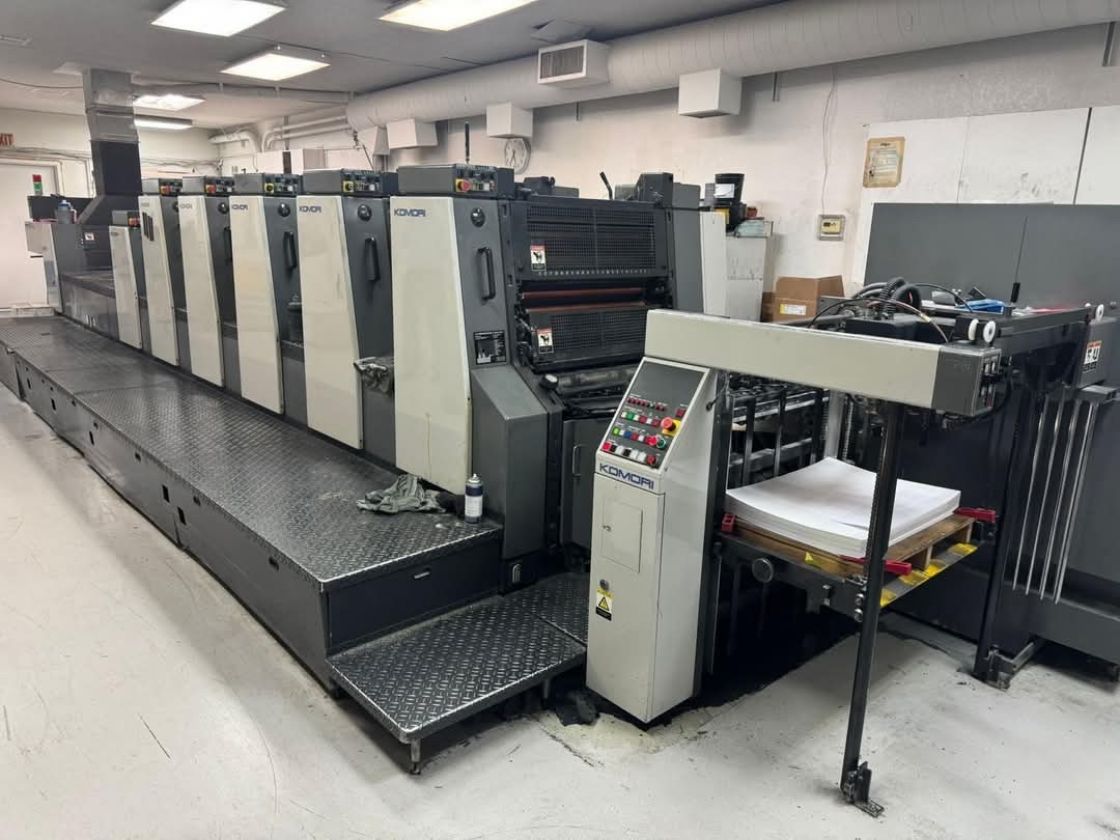 Máy in offset tờ rời 5 màu đã qua sử dụng hiệu KOMORI LITHRONE L-528+C, do Nhật Bản sản xuất năm 2000